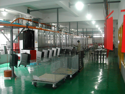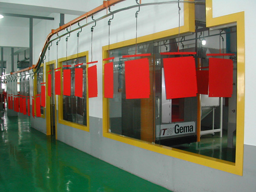 Disponemos de un taller libre de polvo que trabaja con una línea de revestimiento en polvo tipo túnel automática marca GEMA fabricada en Suiza, y tratamos la superficie con máquinas de pulverización automáticas. Todos los componentes atraviesan dos procesos de eliminación de aceite, dos procesos de lavado con agua, rectificación de la superficie, fosfatado, y por último lavado con agua. Una vez que se termina la etapa del revestimiento, todos esos componentes son testeados en diferentes pruebas como la prueba de adhesión, y la prueba de niebla salina, entre otras.